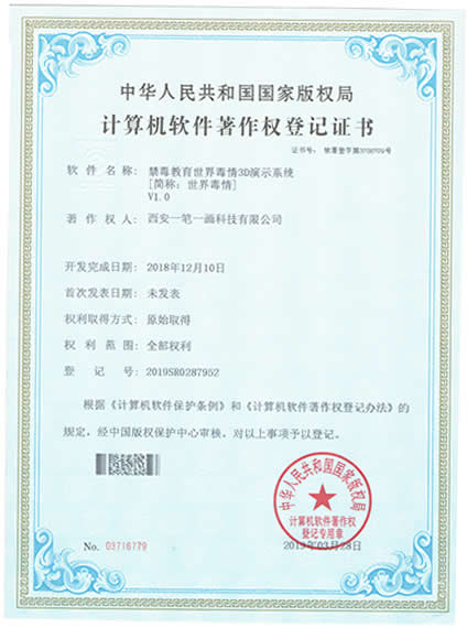 西安一筆一畫科技有限公司擁有《3C管理體系認證》|《3A信用等級》|《展館雙甲資質》《招投標證件》|《展覽業10大影響力品牌》|《環藝雙甲資質》|《禁毒教育拒毒心理測試系統軟著》|《飛奪瀘定橋歷史重現虛擬體驗軟件軟著》|《禁毒教育世界毒情3D演示系統軟著》等等,是您可以信賴的展廳教育基地設計施工企業!